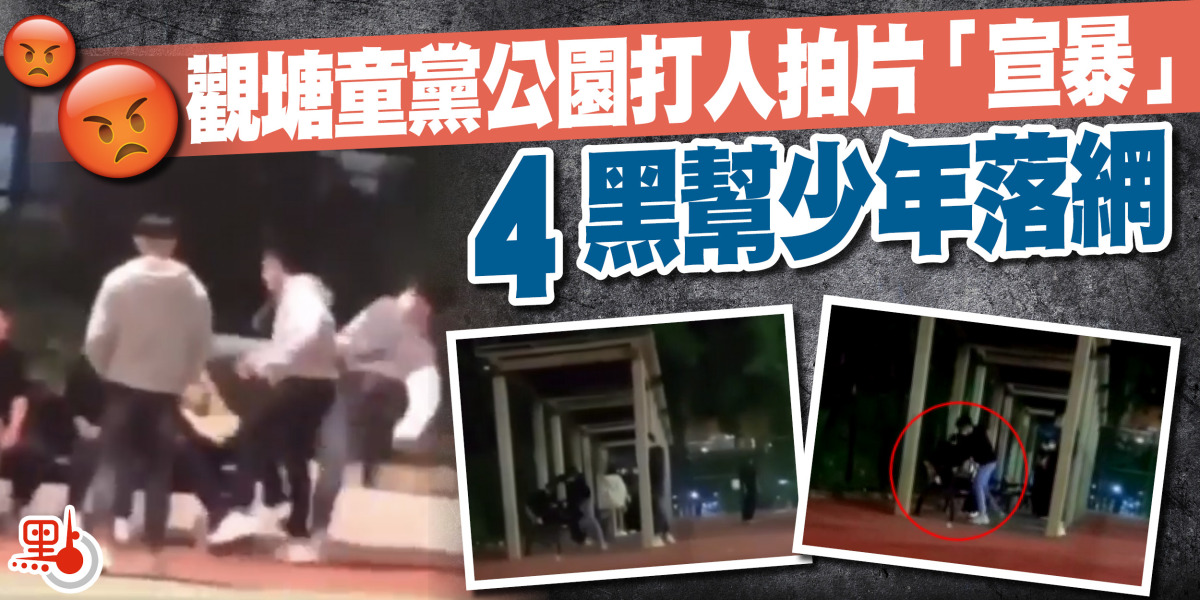 近日網上流傳數段名為「我哋觀塘最X惡」的童黨文宣,當中記錄該批童黨隨意對街童拳毆腳踢的片段,以宣傳其好勇鬥恨的行為。警方秀茂坪警區反三合會行動組留意到網上流傳的影片,經深入調查後,鎖定疑犯身份,以襲擊致造成實際身體傷害,在觀塘及秀茂坪區拘捕4名青年,年齡介乎14至17歲,全部有黑社會背景,其中二人更為中學生。