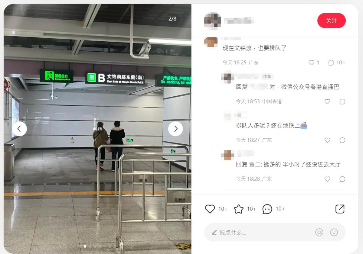 據網友爆料,不少人士為能盡快過關,選擇前往人流較少的文錦渡口岸,惟有網友反映,文錦渡口岸因此人流變多,亦需要排隊。