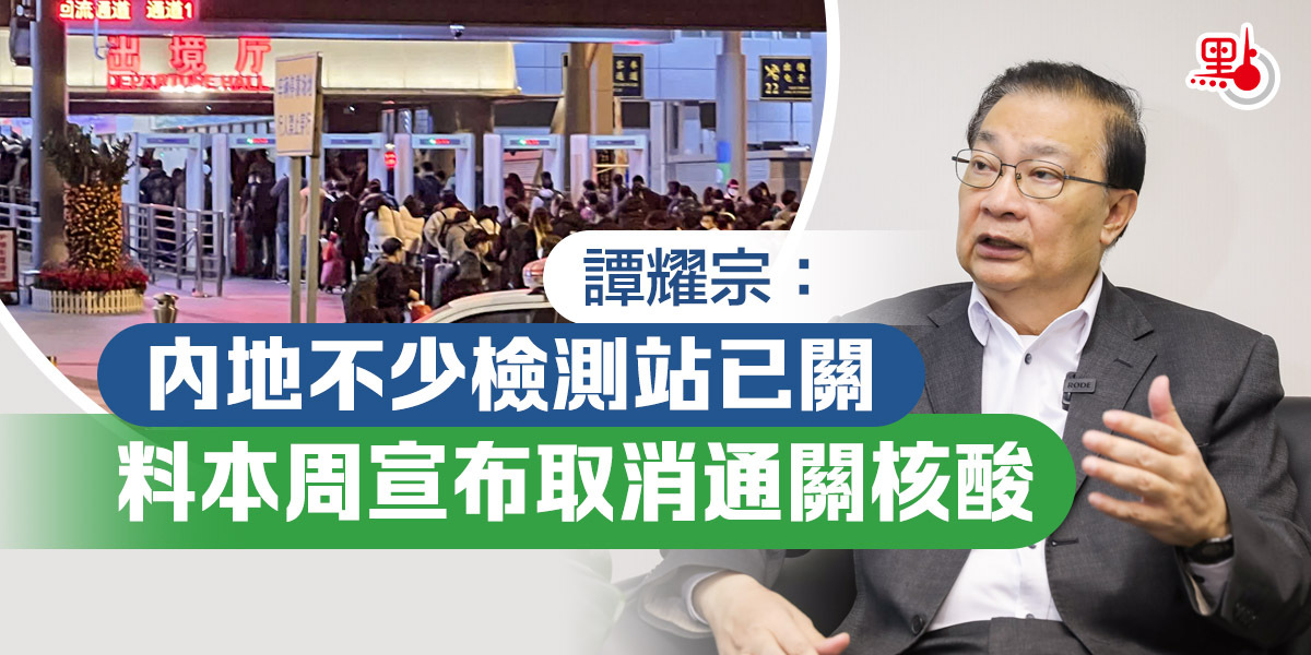香港與內地1月8日起恢復免檢疫通關已有3周,往返兩地人數激增,不少人期盼取消行前48小時內核酸檢測陰性證明要求。全國人大常委會委員譚耀宗今日(30日)表示,內地已關閉不少檢測站,港人要進行核酸檢測都有困難,希望政府盡快公布有關新的安排。