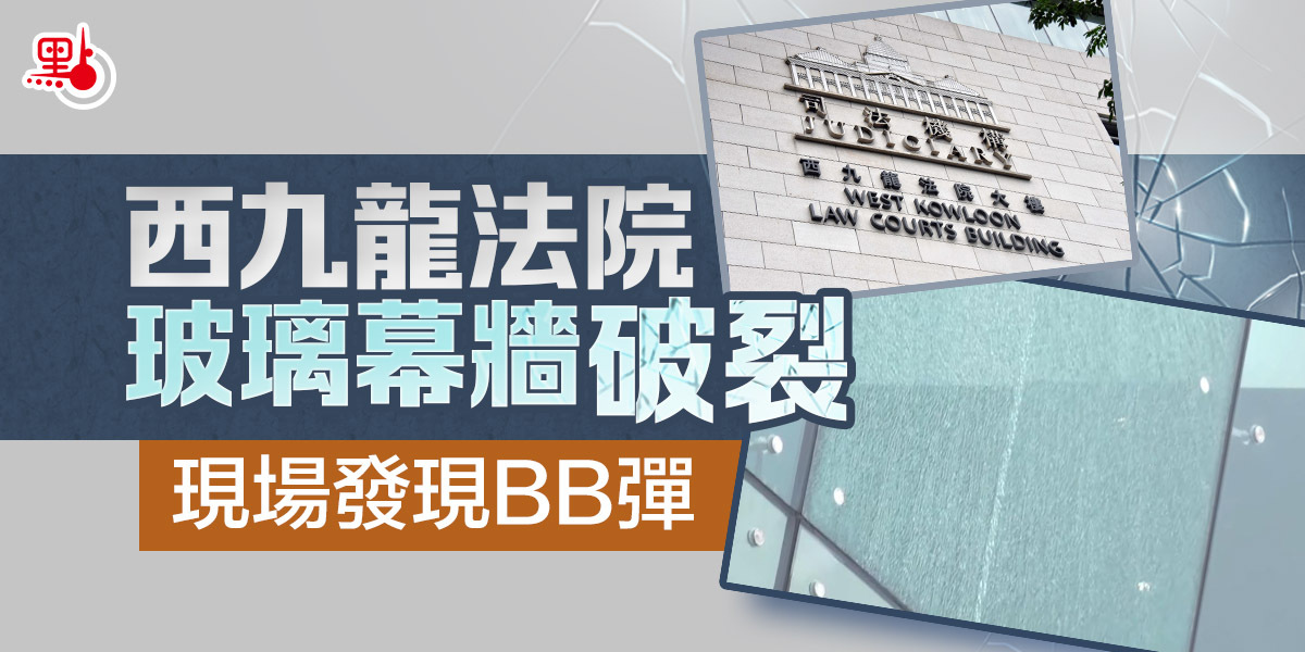 今日(8日)下午1時許,執法部門接報,指西九龍法院1樓一幅約2米乘5米的玻璃幕牆破裂,惟沒有粉碎,附近遺下懷疑BB彈。法院的保安發現幕牆有裂痕後報警。包括炸彈處理組及便衣執法人員接報到場,經初步調查後,案件列作求警協助處理,暫未有人被捕。(點新聞現場直擊,點此觀看直播)