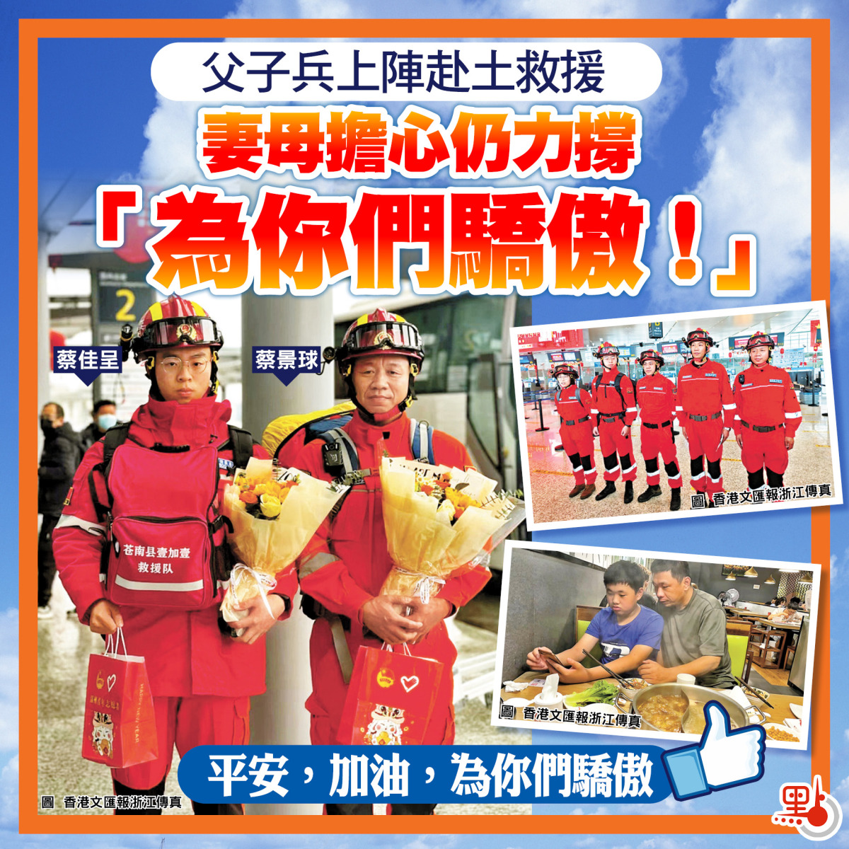 2月9日,張耀文的丈夫蔡景球、兒子蔡佳呈作為浙江溫州蒼南縣壹加壹應急救援中心的成員,出發前往土耳其參與救援與災後重建工作。作為妻子,作為母親,張耀文無法不擔心,但是她選擇相信和支持,「我會守好『大後方』,等待他倆平安歸來」。