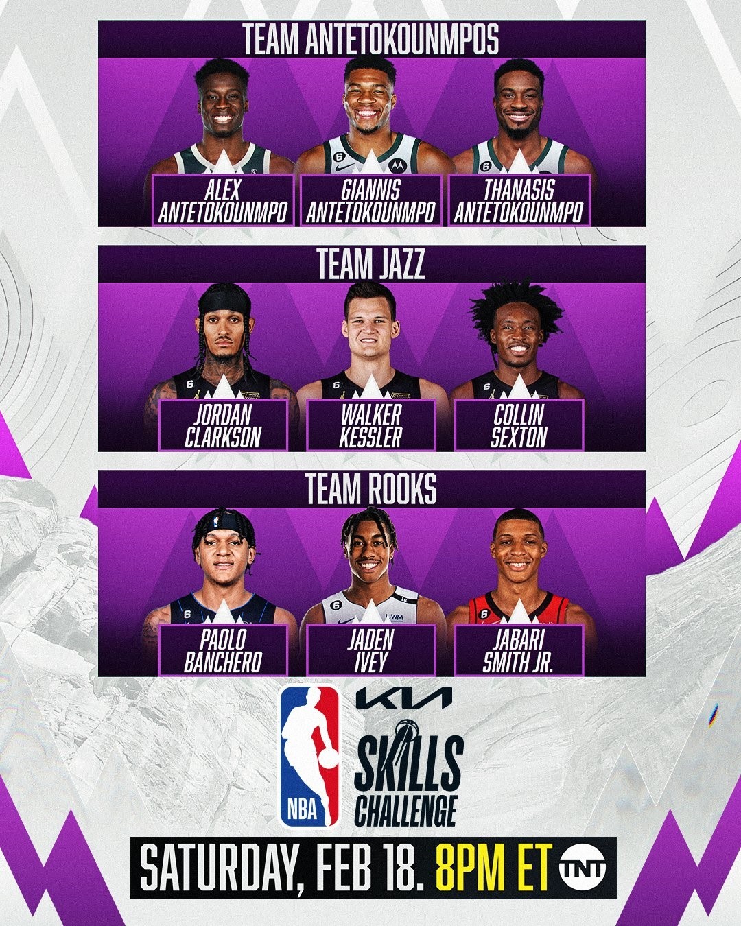 NBA全明星周末將於本周末在猶他舉行,周五(17日)先舉行名人賽和新星挑戰賽,周六(18日)則舉行3分球賽、技巧賽和入樽賽,重頭戲明星賽於周日(19日)上演。NBA近日公布全明星各單項賽陣容,積臣·帝譚、達米安·利拿特領銜三分大賽,技巧賽字母三兄弟連續第二年參加,扣籃大賽小馬田、墨菲三世在列。