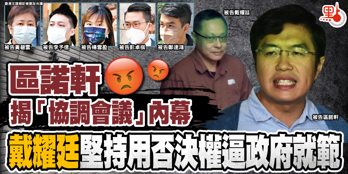 被控串謀顛覆國家政權罪的「47人初選案」,昨日進入第八天審訊,認罪被告區諾軒續以「共犯證人」身份作供,進一步交代各區「協調會議」詳情。他指讀過戴耀廷《真攬炒十步》文章後,曾向戴直言「你嘅想法太瘋狂」,但戴耀廷一直堅持其想法,即「積極」運用議員否決權來否決財政預算案,以爭取所謂的「五大訴求」和「雙普選」。即使「協調會議」中與會者未有就此議題達成共識,戴仍堅持把想法寫入「協調機制」。