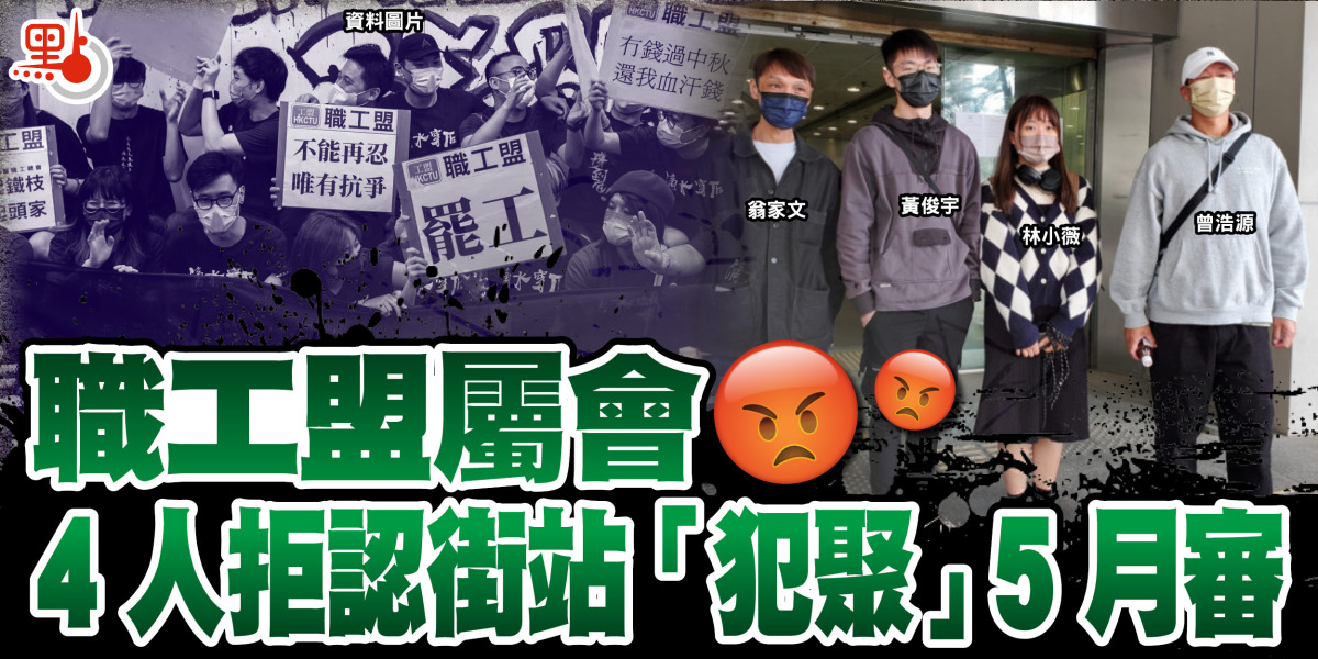 職工盟屬會「建築地盤職工總會」2020年在金鐘設街站派發防疫物資及傳單,10名義工涉違反限聚令,各被票控「參與受禁群組聚集」,6人已認罪。餘下4人昨日在東區裁判法院否認控罪,案件押後至5月8日開審,預計需時三天。控方透露擬傳召6名證人,不依賴警誡供詞,並播放約190分鐘現場片段。