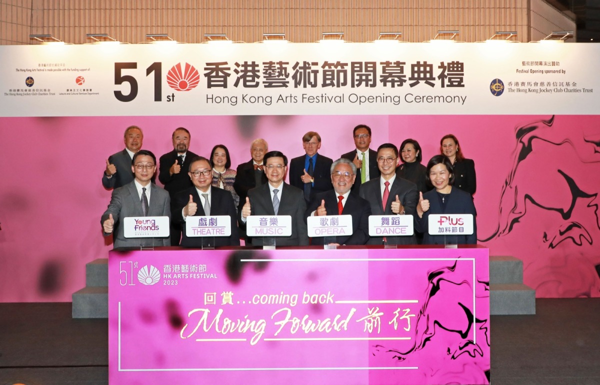 第51屆香港藝術節以「回賞·前行」為主題,於今天(17日)揭開帷幕。今屆藝術節開幕禮假香港文化中心舉行,主禮嘉賓包括行政長官李家超、文化體育及旅遊局局長楊潤雄、康文署署長劉明光、馬會董事廖長江、香港藝術節主席查懋成與行政總監余潔儀。