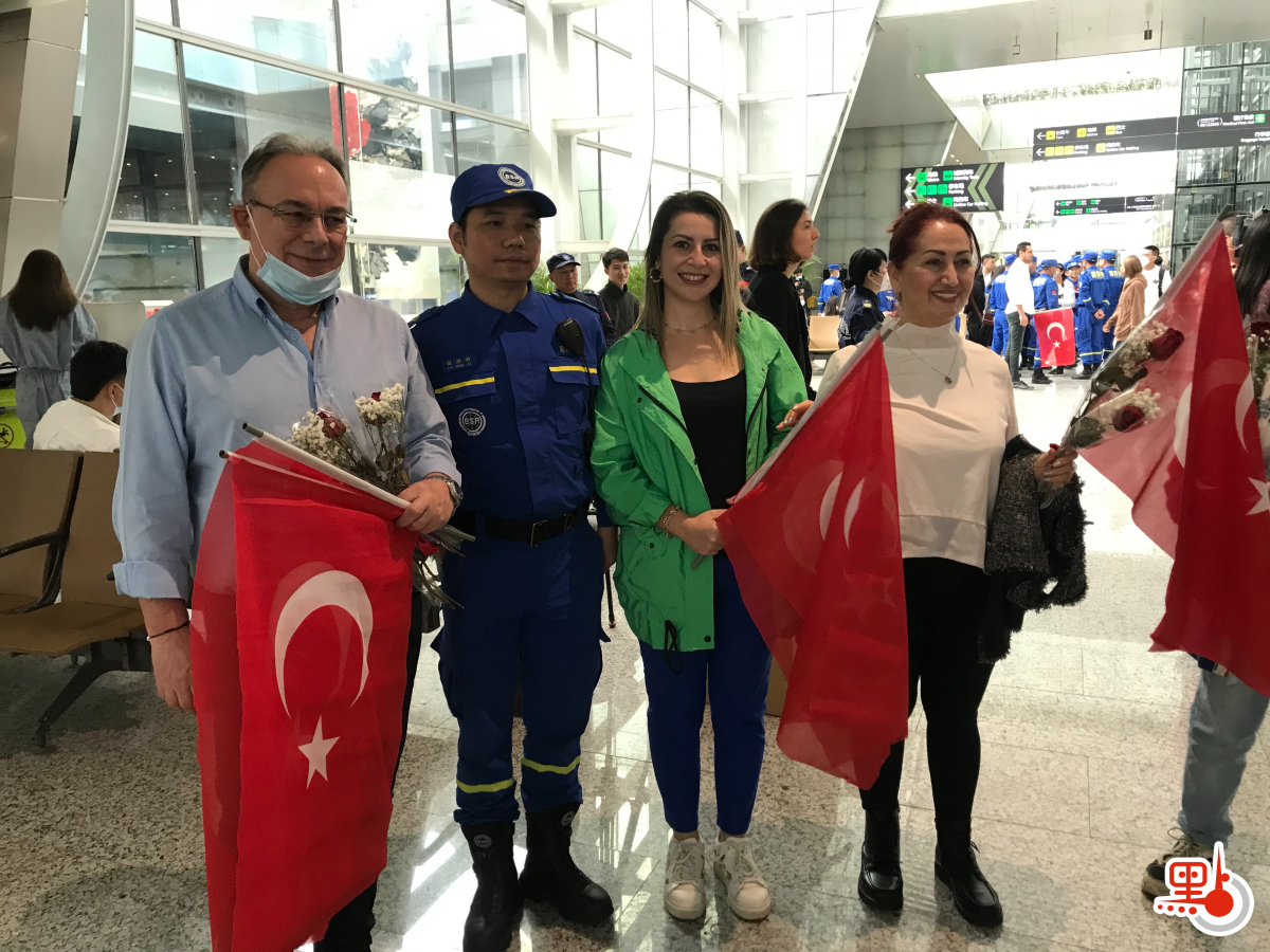 土耳其駐廣州總領事庫特魯·阿義坎攜家人和同事到機場迎接中國藍天救援隊隊員,他對隊員們表示,拯救生命是這個地球上最可敬的工作,感謝隊員們對土耳其人民付出的一切。他又稱,中國和土耳其在絲綢之路的兩端,援土隊員們把兩端牢牢系在一起。