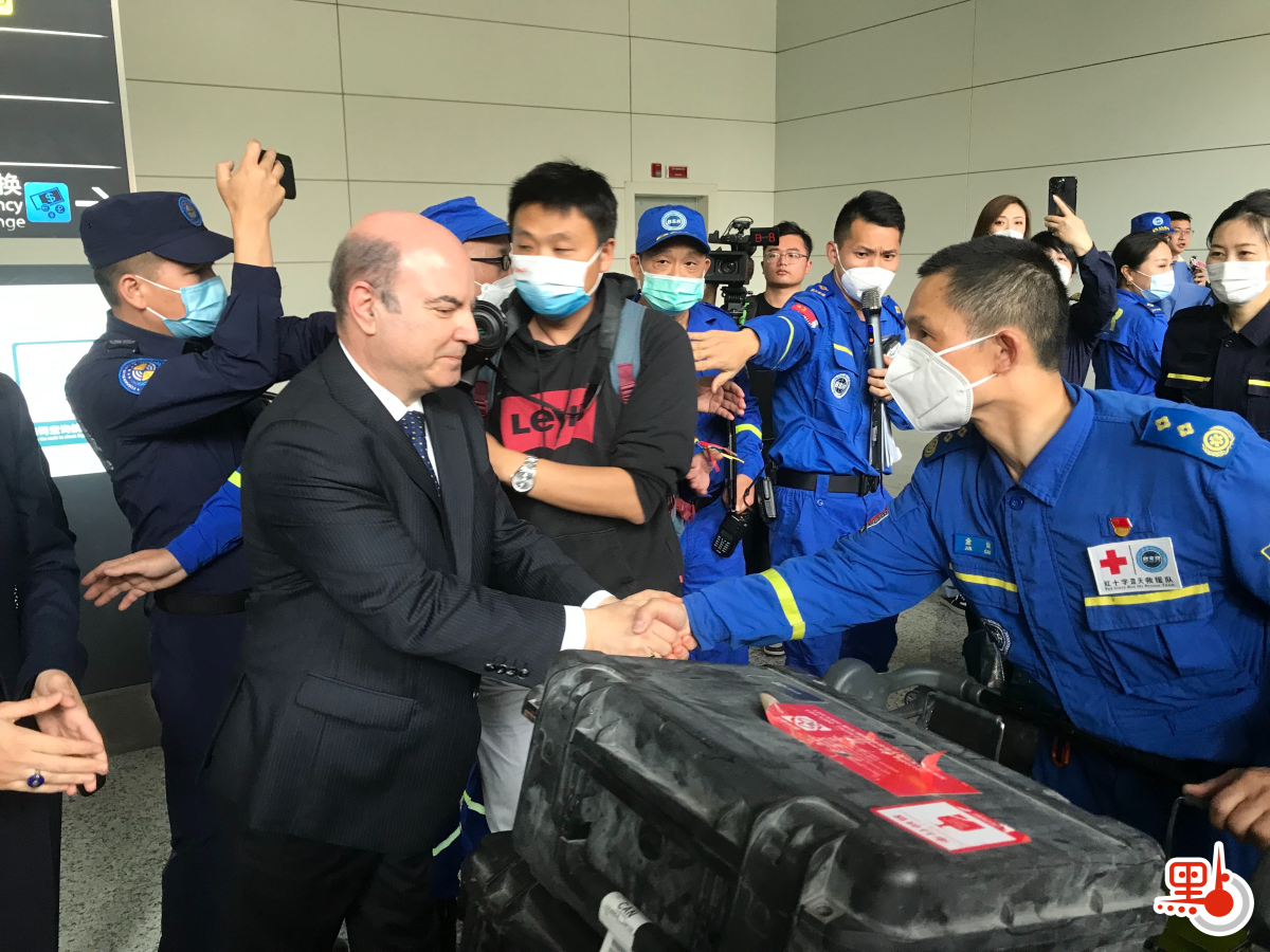 12點30分,搭載139名隊員的航班順利抵達白雲機場,數百位不同國籍、城市、行業的人士,鼓掌熱烈歡迎他們,紛紛送上鮮花和擁抱。除此之外,他們每人還獲得了一個由中國藍天救援隊特製的勳章。