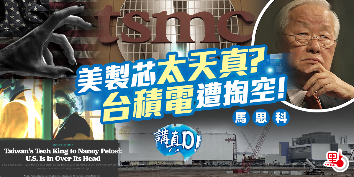 張忠謀多年前設想在美國建廠是單純的商業決定,如今成真卻又多了一份政治色彩,性質已截然不同。台積電的現狀其實就是台灣的縮影—陷入中美矛盾、掙扎於大國政治的夾縫中。張忠謀雖擔心自己一手創立的企業被美國奪走,但在地緣政治的大浪下也只能隨波逐流、聽天由命。民進黨當局要走「台獨」路線,必然要仰賴美國的力量,對於美國索求只能欲拒還迎。民進黨的底線又在哪裏?要犧牲台灣利益到什麼地步才肯善罷甘休?