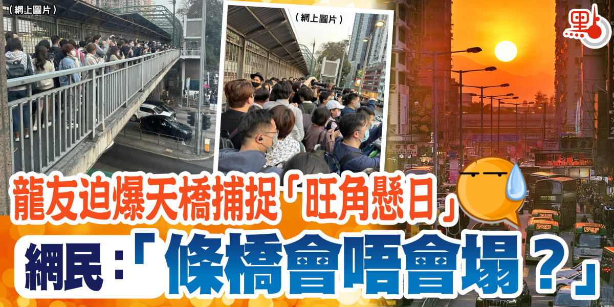 最近有網民於Facebook分享自己在旺角街頭拍攝的日落美景,不少人大讚超靚,更有人指可以媲美「曼哈頓懸日」,因此吸引了不少攝影發燒友去拍攝!「旺角懸日」每年2月尾及10月中出現,在旺角東亞皆老街近洗衣街行人天橋上,正好拍攝到落日在兩側高樓間下沉,美景堪比美國「曼哈頓懸日」。龍友為捕捉美景,近日帶齊架生往橋上擠,成為「你站在橋上看風景,看風景人在樓上看你」,充滿民初詩韻的城市一隅。
