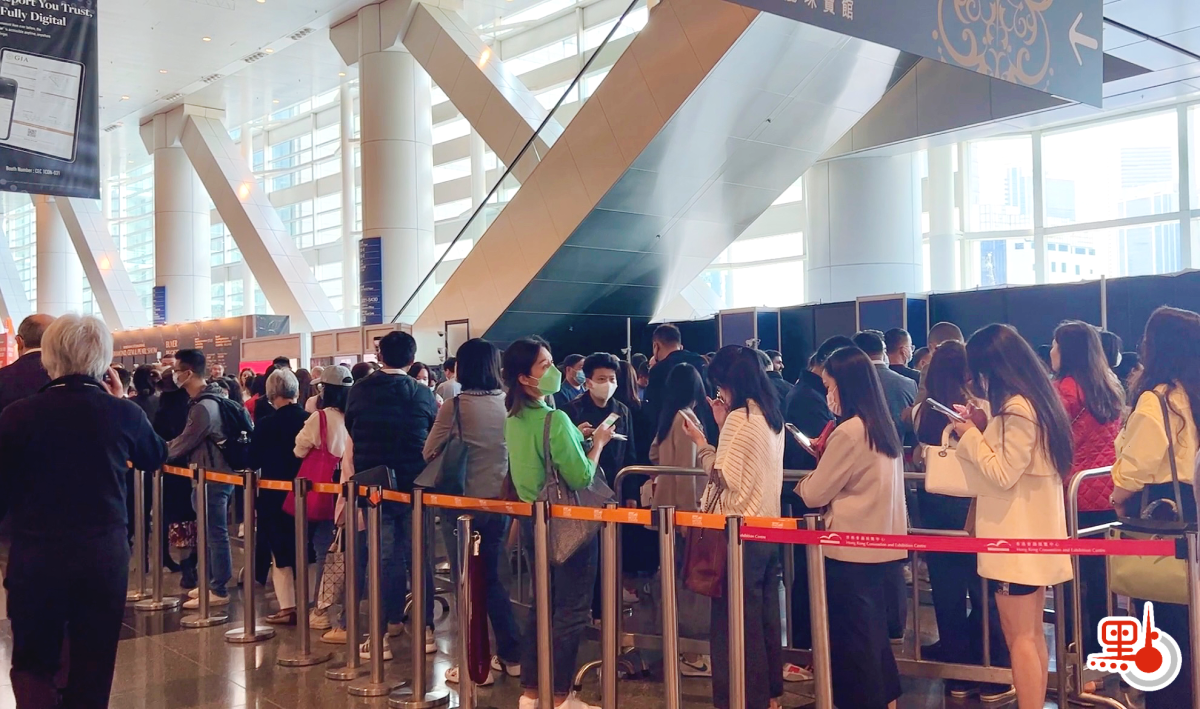 今日的珠寶雙展除了有來自世界各地的展商,也有來自不同地方的參展人士及買家。在展覽入口的登記處,記者見到出現了較長的「人龍」,許多參展人士正在排隊等待登記入場。一位來自內地的旅客向記者表示,記得香港珠寶展每年都會舉辦的,但因為疫情有幾年沒過來了,現在通關了,以後會常來的,不過沒想到今天那麼多人。