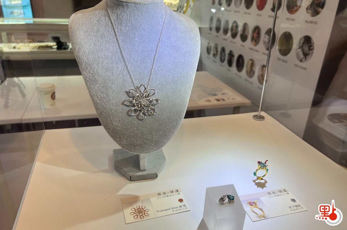 記者在走訪展會期間,被一個頗具特色的展位吸引,展位擺放了許多散發着民族風情的飾物。經工作人員介紹了解到,參展商Loupe的展位特設「絲連」展覽,展出了以玉及琥珀設計的一系列飾品。同時,工作人員告訴記者,眼前見到的頗具中國傳統美學色彩的飾品,是香港知專設計學院學生早前參與「敦煌·絲連」珠寶設計比賽的得獎作品。