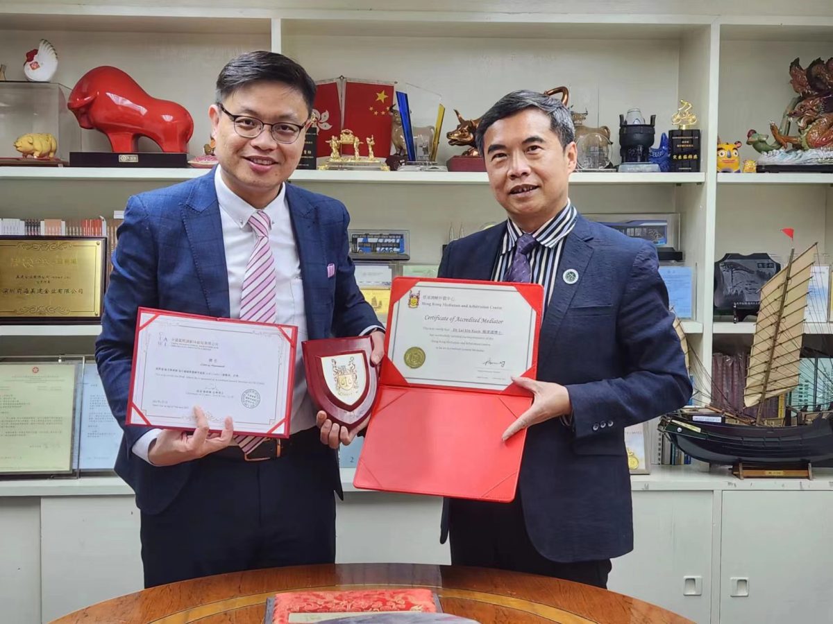 香港調解仲裁中心與中國國際調解仲裁院有限公司近日落實國際調解證書互認儀式。由香港調解仲裁中心主席蘇文傑,中國國際調解仲裁院有限公司院長、中國東盟(澳門)仲裁協會創會主席賴建國互頒調解員聘書,並完成備忘錄簽署儀式。此舉有助推進落實國際調解證書互認機制,支持粵港澳三地調解員資質互認。