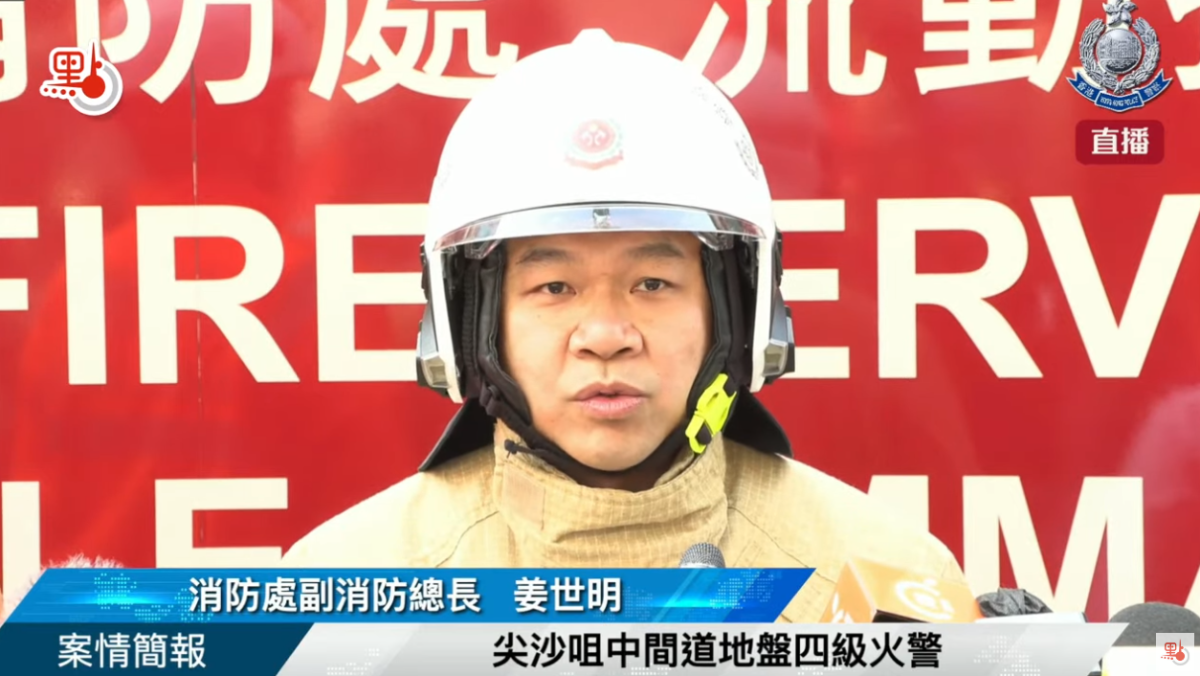 消防處今日(3日)舉行記者會,交代昨晚尖沙咀火警詳情。消防處副消防處長姜世明表示,消防處昨日(2日)晚上11時11分接報在尖沙咀中間道11號有一個建築中的工地起火,消防人員於昨日11時16分到場,發現現場是面積龐大的地盤,達到60米乘80米,樓高48層。