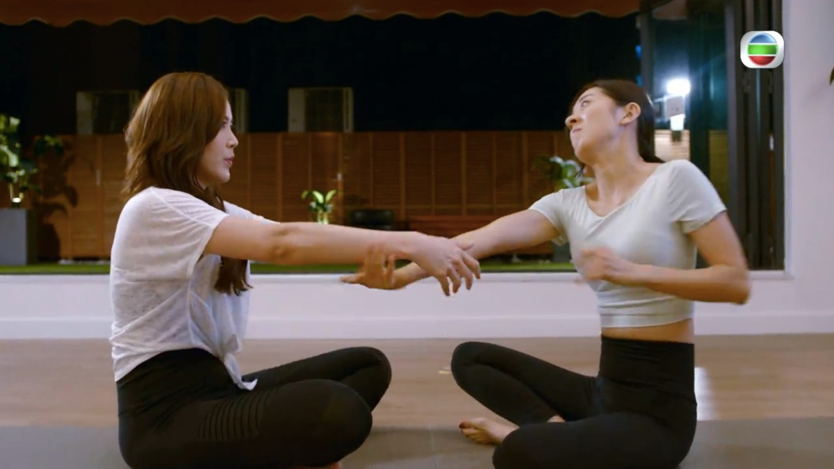 另外,詩詠昨晚與劉佩玥的「不和升級戰」,每逢見面倍扯火的二人,昨晚由辦公室「踩過界」鬥到瑜伽房,名副其實先是口角繼而動武。事緣詩詠不滿哥哥淪為佩玥「觀音兵」,先則口角繼而動武,除大玩「暴力拉筋」及「人肉互壓」外,更玩埋摔交,詩詠以大髀夾實佩玥頭部,互扯頭髮兼叉頸,由於二人喜感節奏掌握得宜、表情亦相當多變,網民留言:「呢幕戲好好笑,兩個死咬唔放報仇」、「好睇又好笑」。