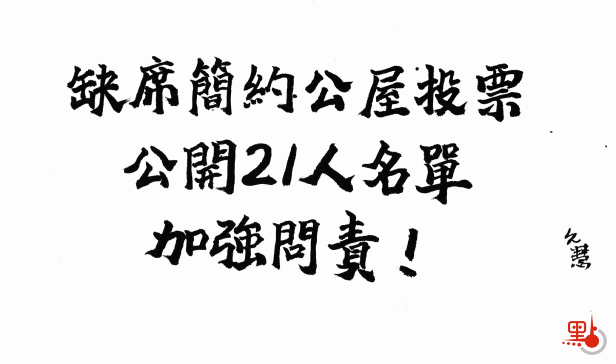 「- 要記名,下次選舉要公布出席議會次數,等市民知道他們的出席率,來決定應唔應該再投票比佢。