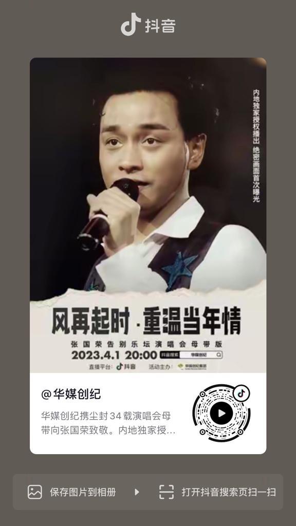 今年是「哥哥」張國榮逝世20周年,香港乃至全世界各地都會舉行不同的紀念活動,令大眾可以緬懷一代巨星。香港演唱會製作人丘亞葵與華媒創紀集團合作,將「哥哥」1989年告別演唱會重新包裝整合成全新特輯,於4月1日晚8時在內地抖音平台,直播「風再起時·重溫當年情」張國榮告別樂壇演唱會母帶版。