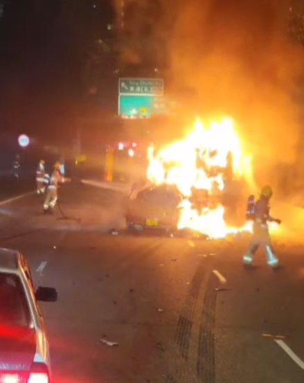 北大嶼山公路往機場方向近東薈城路段今日(30日)凌晨4時許發生致命交通意外,涉及兩輛貨車和一輛的士,其中的士在意外後起火,司機一度被困,其後證實死亡,另一名貨車司機受傷。