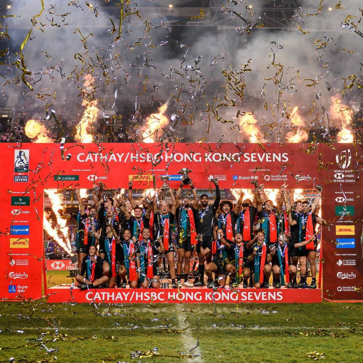 今晚男子組決賽由新西蘭對陣斐濟,新西蘭由頭帶到尾,上半場就有4次達陣,最終以24比17力壓斐濟,自2014年後再度於香港七欖封王。斐濟則連續兩屆在香港站屈居亞軍。女子組決賽方面,新西蘭在落後情況下後來居上,反勝26比17擊敗澳洲,同樣奪得銀盃。