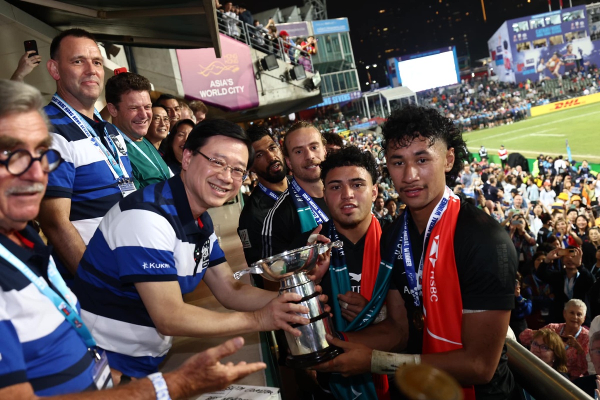 全城矚目盛事香港國際七人欖球賽載譽歸來,一連三日在香港大球場舉行,並於今日(2日)迎來煞科日。行政長官李家超今日入場觀賽,並為冠亞軍球隊頒獎。李家超在社交平台發文指,自己在看台與球迷觀眾一起感受比賽的熱鬧氣氛,參賽隊伍傾力作賽,精彩刺激的賽事讓大家都看得熱血沸騰,整個球場都「熱起來」。