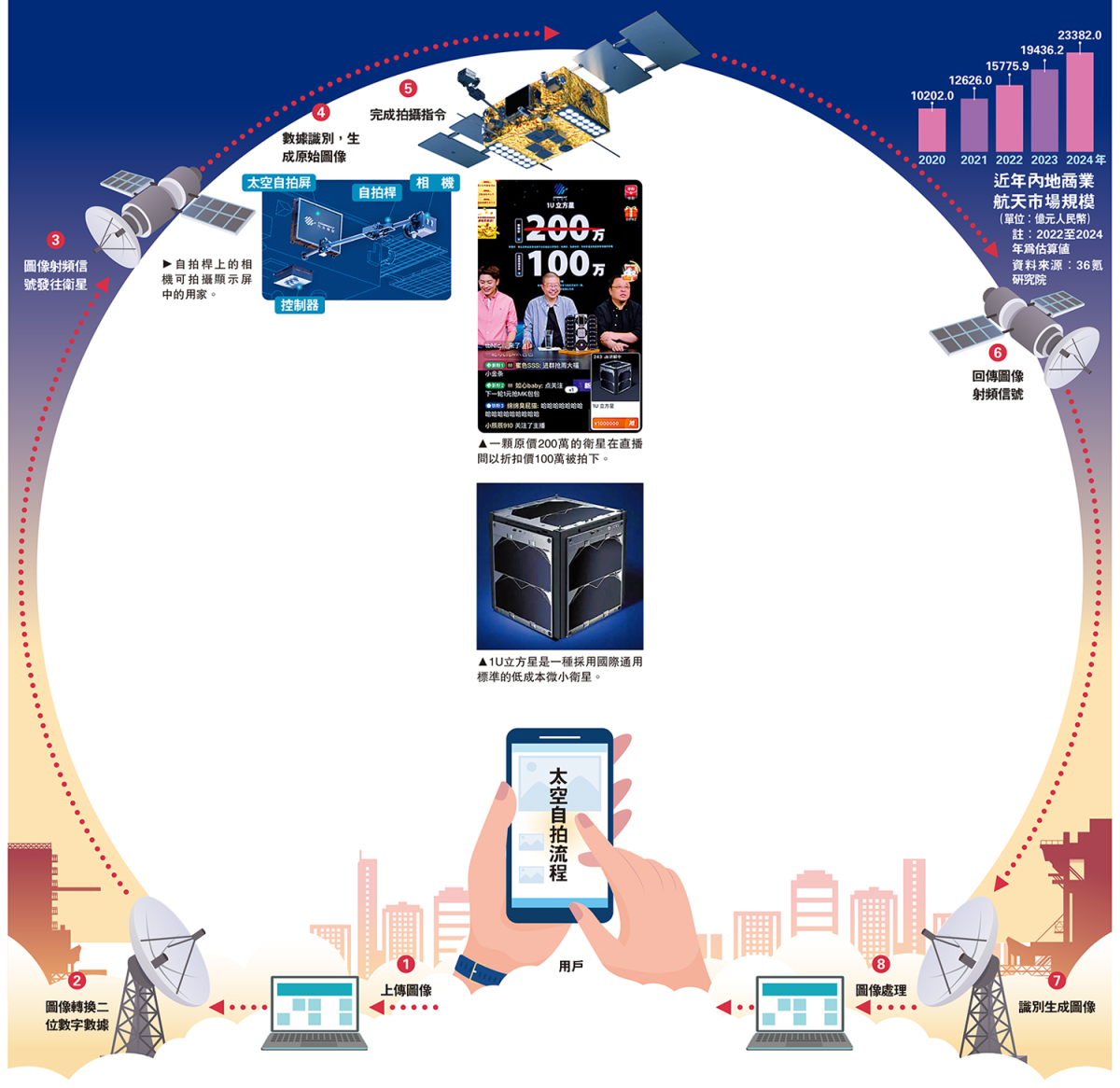 近年來,內地商業航天發射飛速發展,曾經神秘的火箭、衛星已開始成為普通公眾就能接觸到的商品。日前,商業航天企業九天微星在淘寶平台上架首批國產衛星,截至4月1日0時,已有兩單百萬元(人民幣,下同)級衛星成交,其中一顆在內地網紅羅永浩直播間被拍下,另一顆則通過網店拍下,這創下電商直播誕生以來成交實物商用衛星的先例。據了解,衛星成交後,買賣雙方將進一步確認具體需求,敲定合同細節,再安排發射,最快半年左右,衛星就可完成發射、入軌運行。