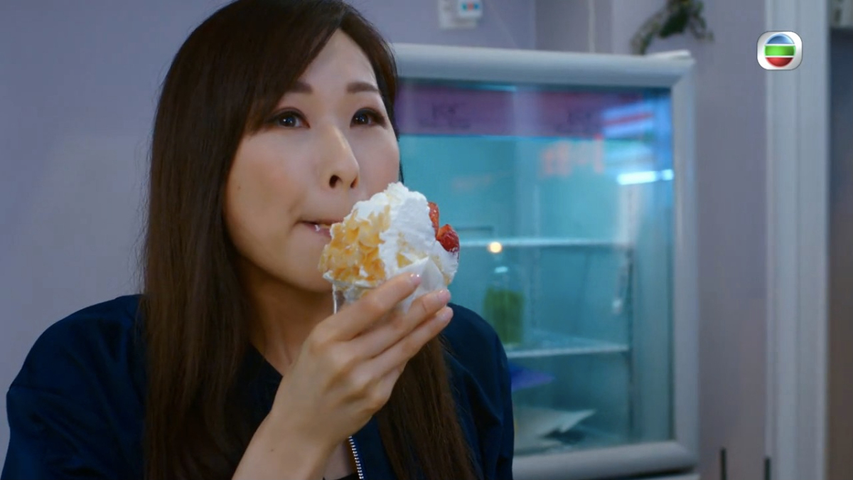 談到吃蛋糕,Candice指沒有事先練習「甜美表情」,只是跟着劇本及角色性格發揮:「之前拍《金宵大廈》同《十八年後》都要練啲比較奸同恐怖嘅笑容,同埋想盡量每一套劇都唔同,所以相對今次呢個角色係比較易啲,sweet同positive好多。」
