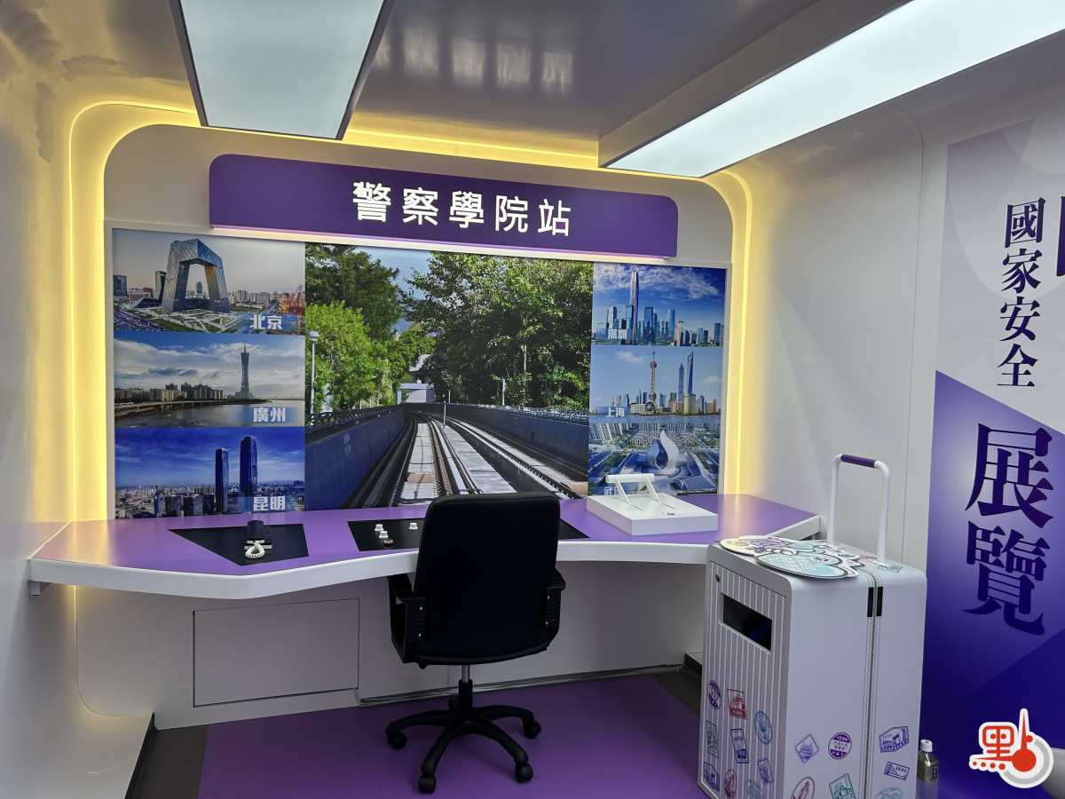 為慶祝香港特別行政區成立25周年及加深警隊人員對國家安全的認識,國家安全處於香港警察學院基礎訓練學校新教學大樓地下特設「國安號」國家安全展覽(展覽)。展覽模擬廣深港高速鐵路(高鐵) 車廂及車站月台,寓意國家安全如高鐵連繫內地香港兩地並與市民生活息息相關。
