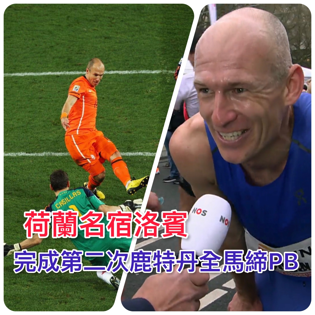 39歲的荷蘭足球名宿洛賓,日前跑畢人生第二次荷蘭鹿特丹全馬賽事,並以2小時58分33秒的成績,刷新他自己前年以3小時13分40秒完成賽事的PB(個人最佳成績)。