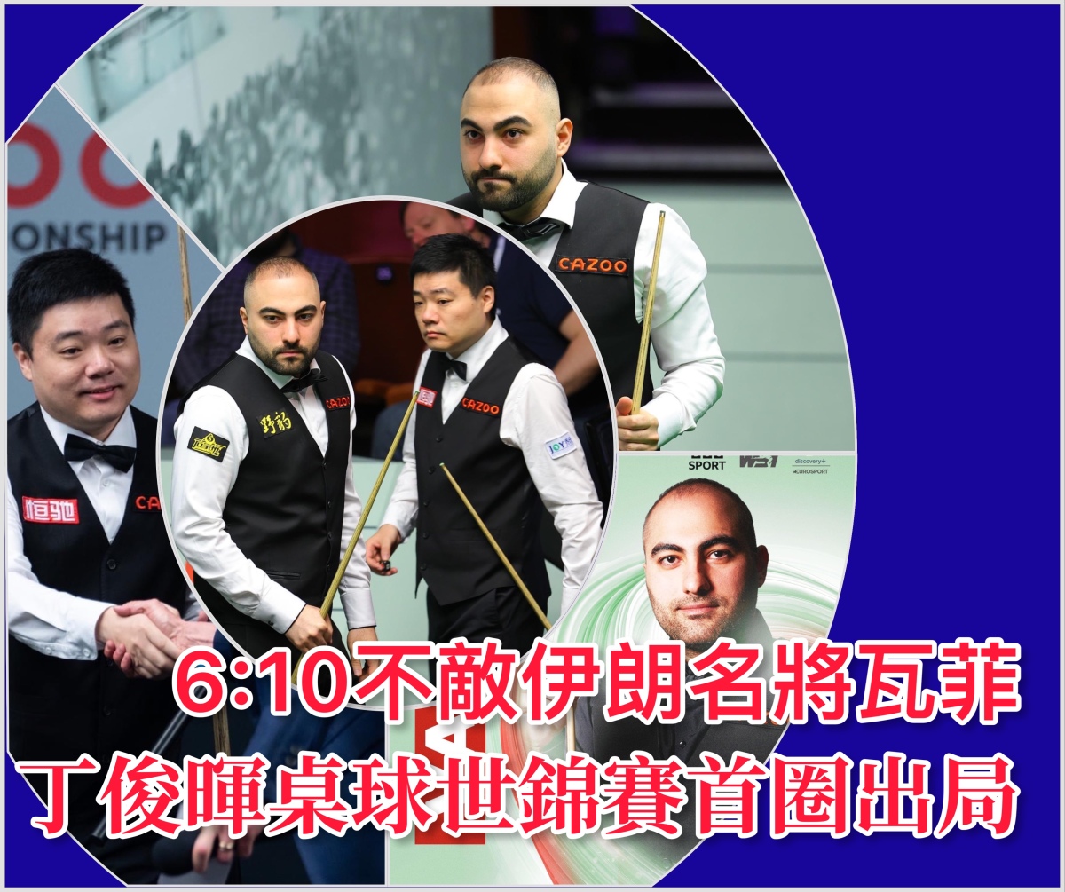 中國桌球名將,36歲的丁俊暉雖然獲得直接參加本屆世界桌球錦標賽的資格,可惜他在首圈賽事,與伊朗名將瓦菲苦戰之下,以6∶10不敵對手首圈出局,未能延續他本賽季曾經奪得六個紅球世錦賽冠軍的強勢。