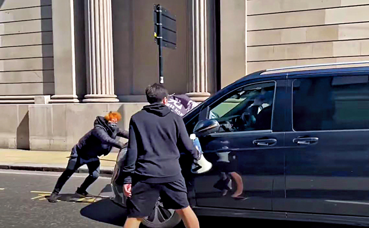 竄逃英國的反中亂港者又上演「馬騮戲」。財經事務及庫務局局長許正宇倫敦時間17日出席在倫敦金融城舉行的2023創新金融全球峰會,與來自世界各地的約2000名參與者探討商機,竟然有「香港示威者」攔截許正宇及香港官員的車輛。全國政協副主席梁振英昨日(18日)在社交媒體發帖嘲諷所謂「香港示威者」行為,是「被外江佬舞的馬騮仔」(江湖賣藝人飼養的猴子,靠打鬧搞笑賺取賞金)。