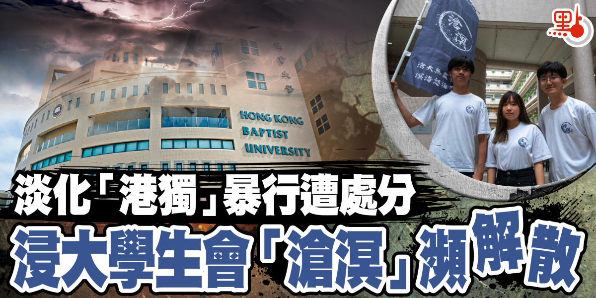 香港浸會大學新任幹事會內閣「滄溟」近日在網上發布誇大、偏頗,並不符合社會的標準和價值觀資料,更意有所指地多次重提黑暴時間用語及淡化「港獨」暴行 ,被質疑是以「軟對抗」方式煽動仇恨,危害國家安全,浸大校方日前裁定相關投訴成立,並對涉事學生進行紀律處分。「滄溟」昨在社交平台回應稱,會根據程序「上訴到底」,又呼籲各同學支持其「後續行動」,「與學生會同行」云云。