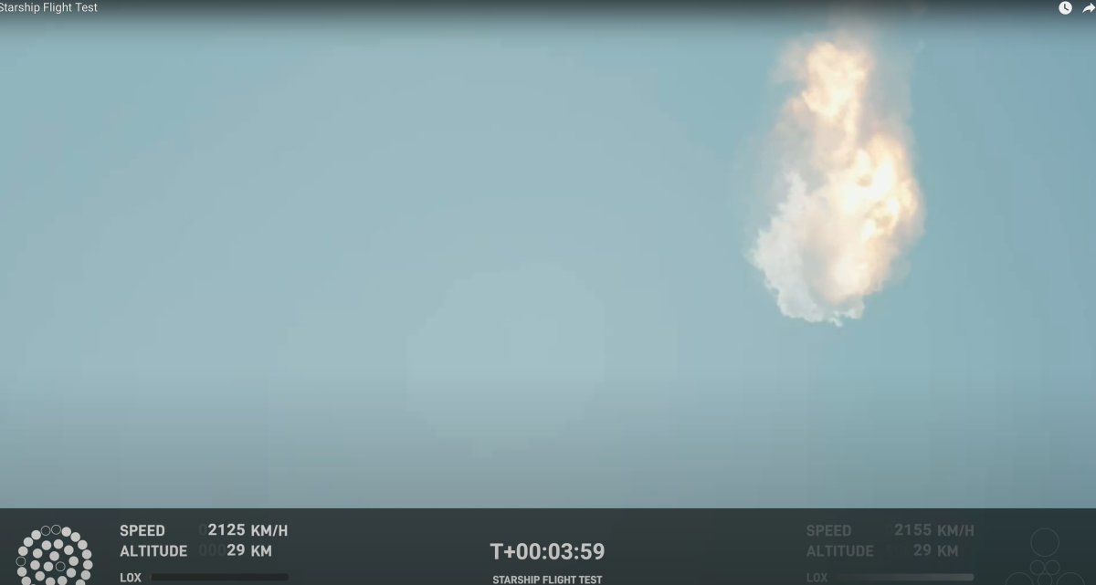 美國富豪馬斯克旗下太空科技公司SpaceX研發的人類史上最大兼最強力火箭系統「星艦」(Starship)於美東時間昨日(20日)上午9時34分(本港時間晚間9時34分)發射,不過「星艦」升空約4分鐘後,於9時38分在空中爆裂。據了解,「星艦」升空約3分鐘時,第二級火箭沒有如預期點火,「星艦」其後在空中爆炸。