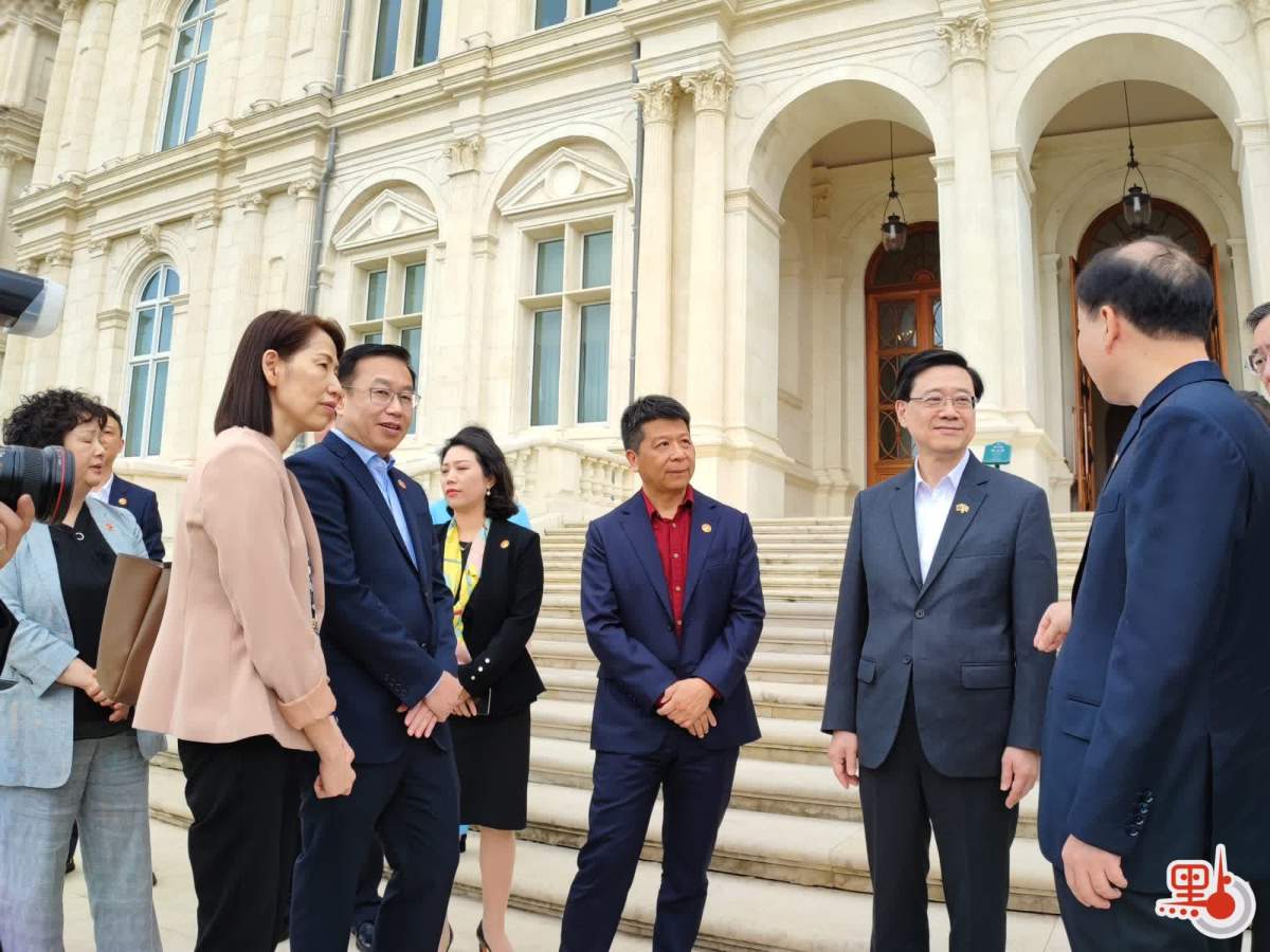 據悉,李家超其後將與東莞港商午宴,下午轉往佛山,與由政務司司長陳國基帶領的「紫組」會合。
