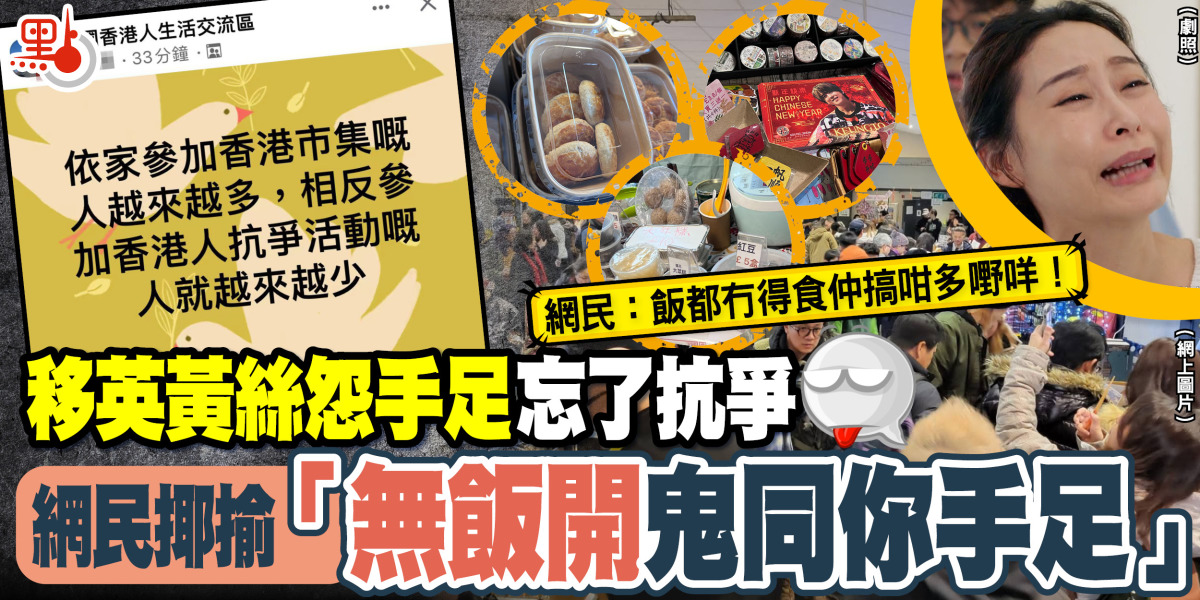 查實,不少移英黃絲都呻難以融入當地生活,於是便搞埋一些所謂香港市集,賣美食、手作、紀念品攤位,圍爐取暖之餘,梗係為搵錢啦,雖則做香港人生意係塘水滾塘魚,但都總好過無吖,仲邊得閒睬所謂的抗爭活動,個個人都想好好過生活。