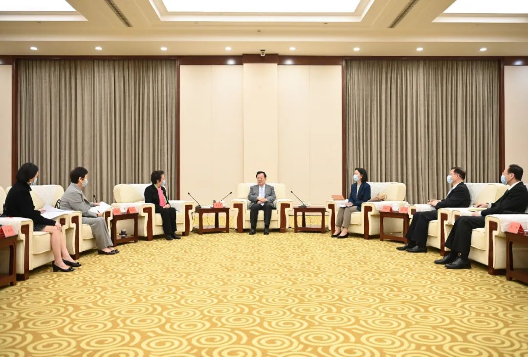 據國務院港澳辦網站今日(25日)消息,4月24日下午,國務院港澳事務辦公室主任夏寶龍在北京會見了由賀定一、王惠貞、何超瓊率領的婦聯系統港澳執委和特邀代表訪問團。夏寶龍充分肯定婦聯系統港澳執委和特邀代表為保持港澳繁榮穩定、推進「一國兩制」實踐作出的貢獻,鼓勵她們繼續在維護國家安全、落實「愛國者治港」「愛國者治澳」原則、支持行政長官和特區政府依法施政等方面發揮積極作用。