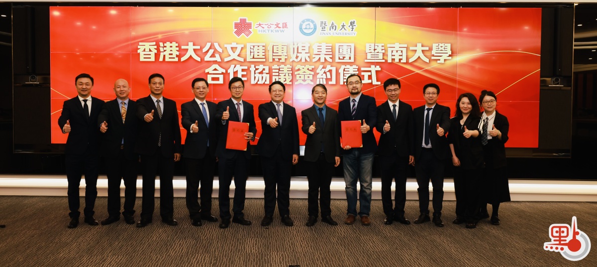 簽約儀式由大文集團副總編輯王欣之主持,集團副董事長、副總編輯王凱波和暨南大學新聞與傳播學院副院長、教授鄭亮,分別代表雙方簽署合作協議。暨南大學新聞與傳播學院副院長、教授林仲軒、羅昕,新聞與傳播學院教授劉倩、副教授黃雅堃等,大文集團全媒體新聞中心總編輯黃曉敏、文匯報副總編輯王國辰、大公報副總編輯趙汝慶等,一同出席活動。
