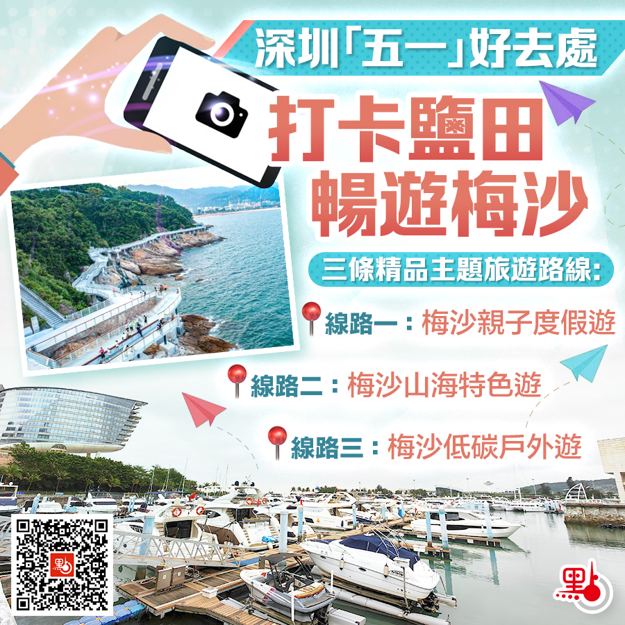 推介會上,鹽田區梅沙街道首度對外發布「灣區親子度假遊、梅沙山海特色遊、戶外低碳徒步遊」三條精品旅遊線路。鹽田山海旅遊資源豐富,海岸線長達30.2公里,擁有大小梅沙、東部華僑城等眾多享譽全國的知名景區、景點,是深圳首個「國家全域旅遊示範區」,被《中國國家地理》評為「中國最美的八大海岸」之一。