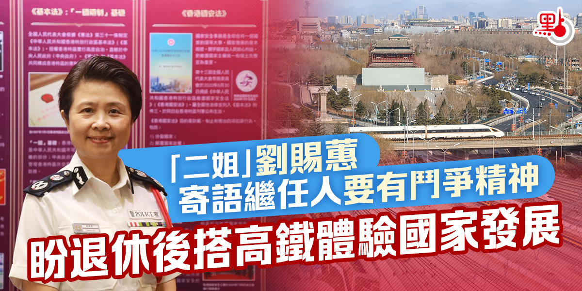 【點新聞報道】「38年,大半生時間都在警隊。現在終於退休,有時間停下來。第一件最想做的事,就是試搭高鐵,到內地城市去體驗國家發展」,人稱「二姐」的警務處副處長(國家安全)劉賜蕙日前向記者朋友告別。