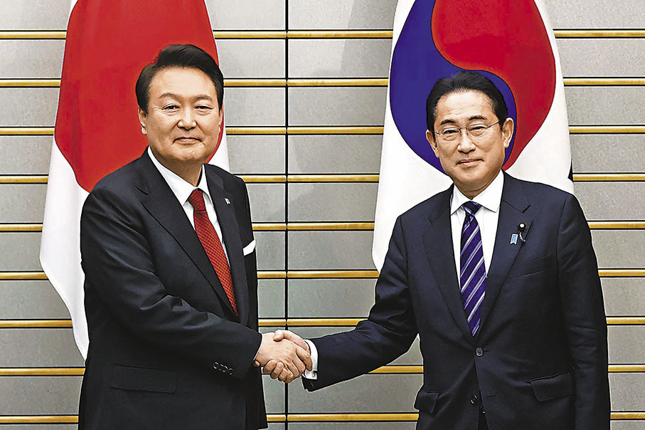 上月6日,韓國政府宣布由韓方基金會代為賠償二戰時期日本強徵韓籍勞工的損失;16日至17日,尹錫悅訪日,推動日韓領導人時隔12年重啟雙邊穿梭外交;24日,尹錫悅訪美前聲稱,無法接受「日本須為100年前的歷史下跪乞求原諒」這一觀念。