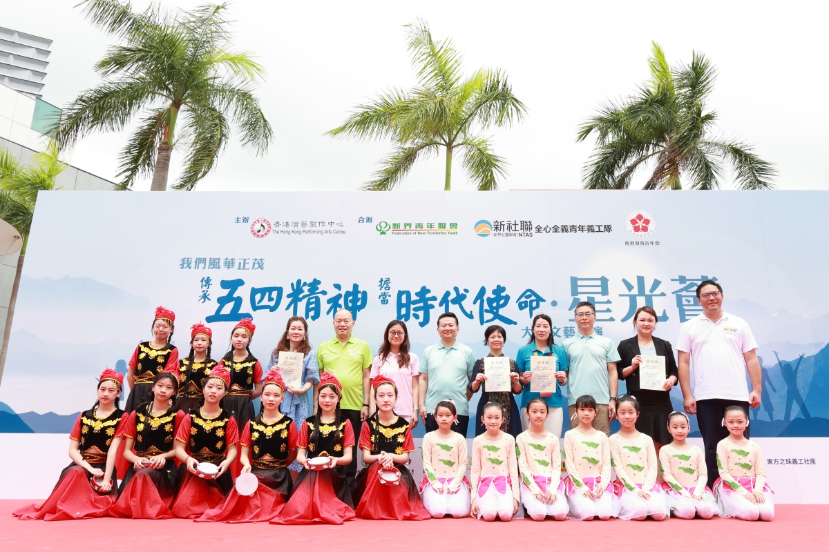 【點新聞報道】由香港湖南青年會、新界青年聯會、新界社團聯會全心全義青年義工隊聯合主辦的「我們風華正茂——傳承五四精神,擔當時代使命」大型文藝表演,今日(6日)在尖沙咀文化中心露天廣場舉行,約300名香港青年歡聚一堂,呈現合唱、舞蹈、漢服、樂器演奏等近30套精彩節目,共同慶祝五四青年節。文藝匯演在線直播吸引了超過2萬點擊互動量。