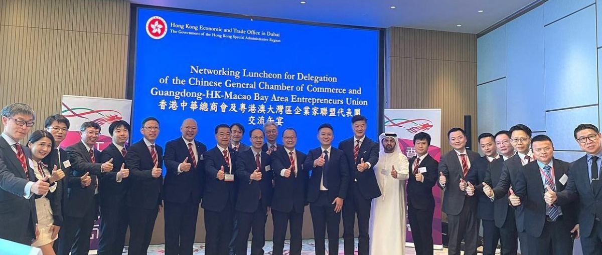 香港駐迪拜經濟貿易辦事處與中總訪問團舉辦交流午宴。處長李國雄表示很高興看到香港和內地企業在中東地區蓬勃發展,並不斷尋找新機遇,再次證明香港確實是「一帶一路」倡議的關鍵紐帶和功能平台。蔡冠深感謝經貿辦致力為香港企業拓展中東市場提供資訊及支援,協助他們發掘區內投資商機發揮關鍵作用。