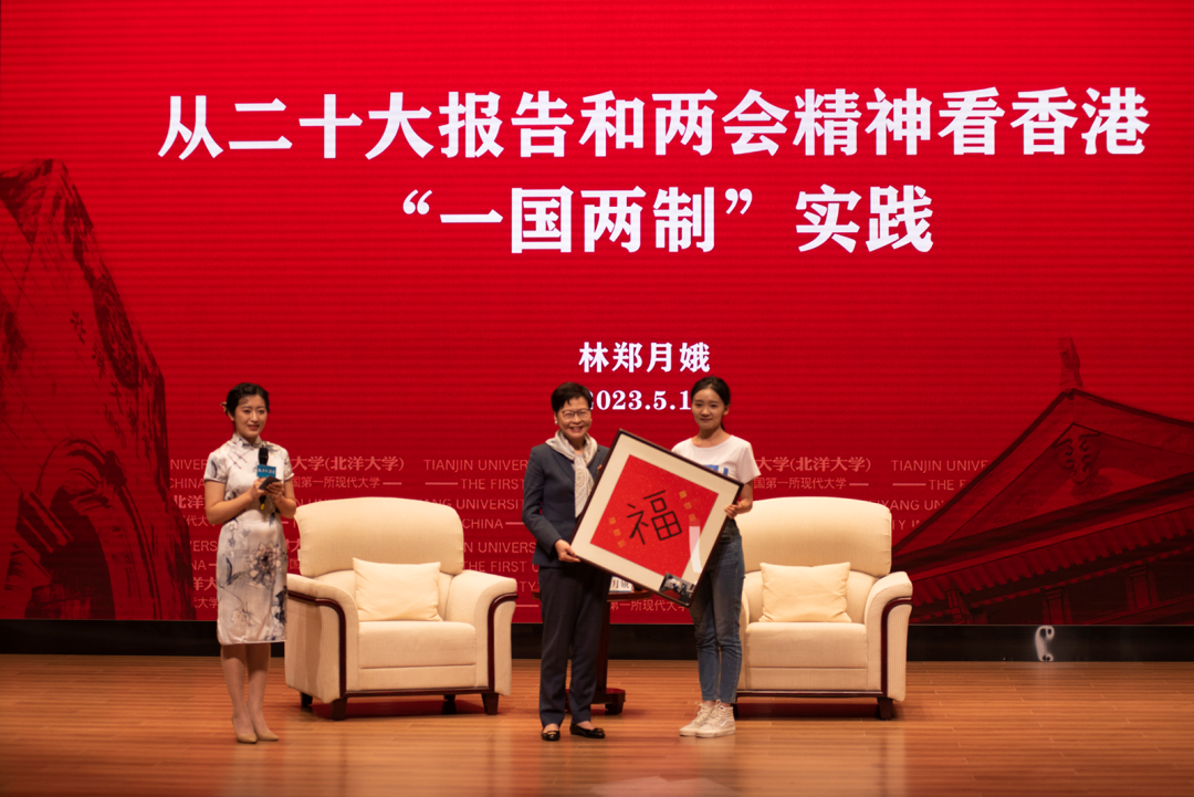 【點新聞報道】據「天津大學」微信公眾號消息,前行政長官林鄭月娥昨日(17日)到訪天津大學並與學生交流互動。在北洋園校區,林鄭月娥做客北洋大講堂,在國家大型地震工程模擬研究設施仿真中心報告廳,作以《從二十大報告和兩會精神看香港「一國兩制」實踐》為主題的演講並與天大師生共同交流。