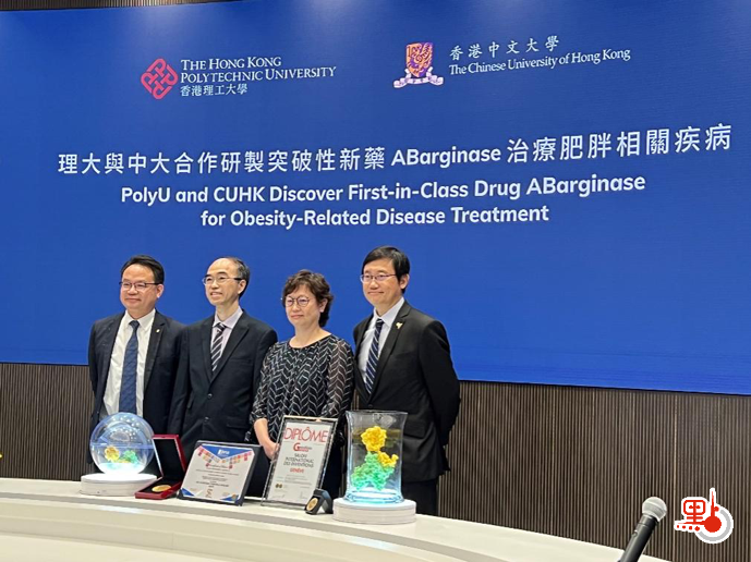 【點新聞報道】香港理工大學(理大)與香港中文大學(中大)日前聯合召開記者會,宣布在合作研發新藥物上取得重大突破,首創治療肥胖相關疾病的新藥「ABarginase」,它針對多種與肥胖症和胰島素抵抗相關的代謝性疾病,例如糖尿病前期、II型糖尿病,以及非酒精性脂肪肝等有突出效果。相比市面上現有治療相關疾病的藥物,「ABarginase」僅需一周注射一次,持續八周即可令體重、脂肪量、胰島素抵抗等數據恢復正常水準。研究團隊表示,該藥物製藥工藝成本低,令更多患者可以負擔和受惠,具有廣闊的臨床應用前景。