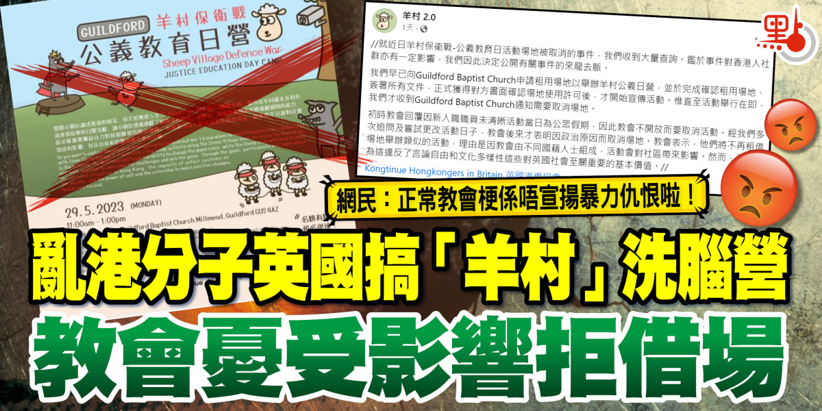 近期多個在英國的反中亂港組織仍死心不息,舉辦所謂「羊村教育營」,以圖政治洗腦,灌輸「港獨」、仇恨的觀念,但在開幕前夕突被取消,因場地方表明憂慮活動性質對團體帶來影響。