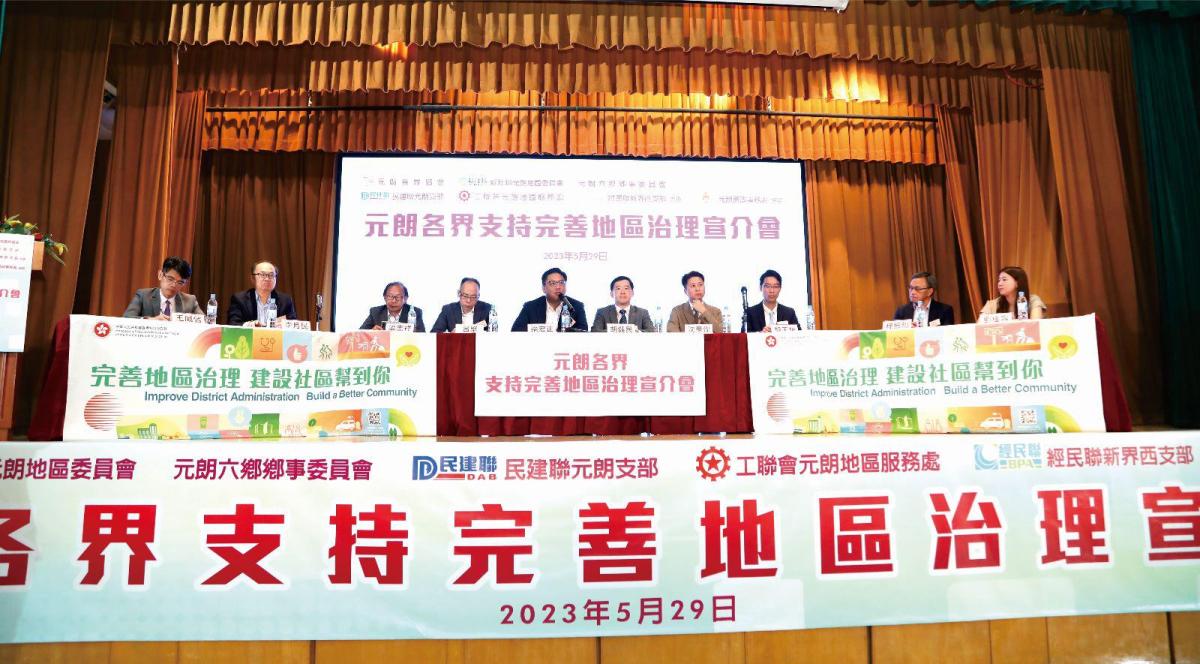 李月民表示,元朗各界社團及市民明確支持完善地區治理建議方案,冀望立法會加快審議通過,為香港社區良政善治開新篇。胡天祐表示,元朗民政事務處多次聯同分區會、滅罪會及防火會「三會」成員走上街頭,向市民解說新方案,並尋求市民支持,反應積極,充分反映市民殷切期待方案得以盡快實施。