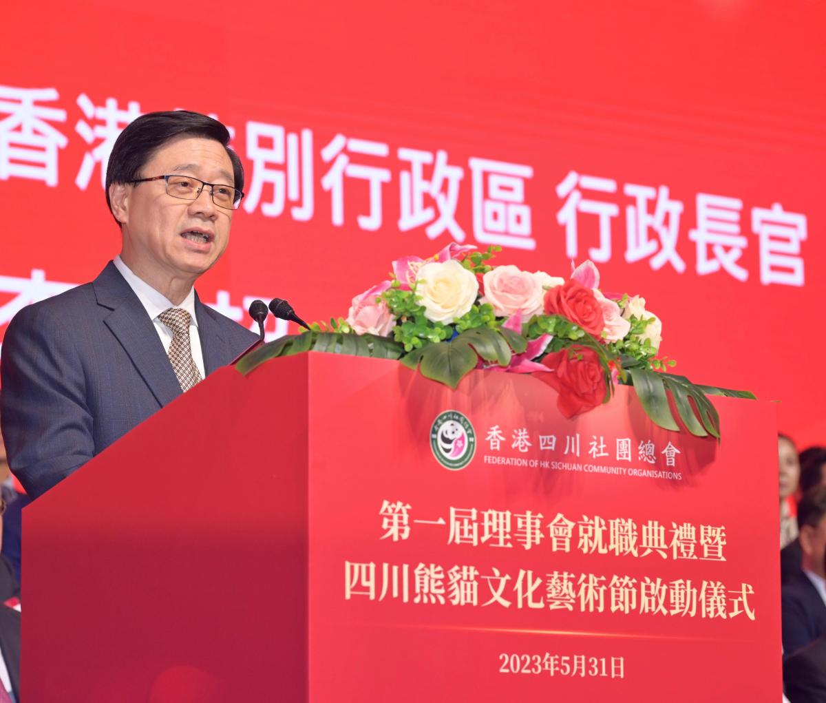 【點新聞報道】行政長官李家超今日(31日)出席香港四川社團總會第一屆理事會就職典禮暨四川熊貓文化藝術節啟動儀式並致辭。李家超表示,四川與香港一向情誼深厚,多年來在經貿、文化、教育、生態保育等多方面合作無間。截至去年底,香港在四川累計投資接近6500個項目和企業,佔四川省累計外商直接投資額大約六成,同時四川累計有39家企業在香港上市。