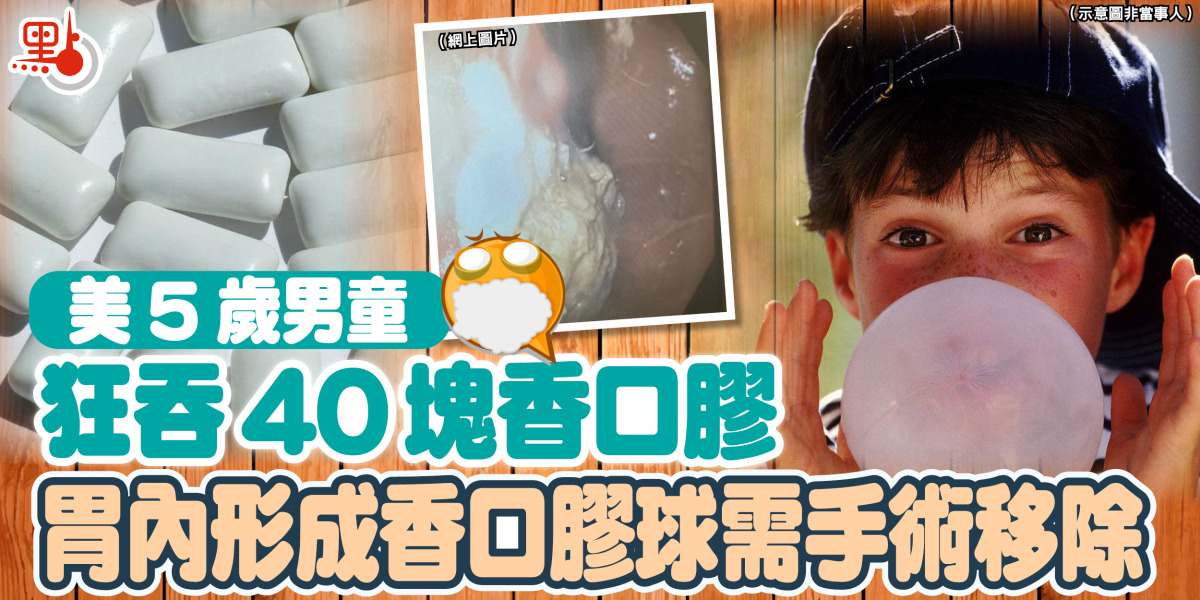 【點新聞報道】小孩誤吞香口膠隨時塞腸!美國一名5歲男童早前吞下40塊香口膠,以致胃部劇痛及腹瀉,醫生檢查發現其胃內已形成香口膠球,需接受緊急手術移除。綜合外媒報道,美國克利夫蘭診所的Chizite Iheonunekwu博士,其所帶領的醫生團隊最近於醫學出版刊物《JEM Reports》披露一宗病例,指在俄亥俄州一名5歲男童吞下了約40塊無糖香口膠。