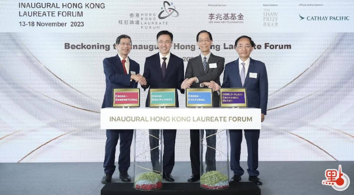 【點新聞報道】在象徵步步高升的香港最地標「天際100觀景台」,今日(6日)迎來了匯聚頂尖思維的香港桂冠論壇發布會。論壇將於11月13至18日在香港科學園舉行。創新科技及工業局局長孫東,聯同香港桂冠論壇委員會主席唐偉章、李兆基基金董事林高演、邵逸夫獎理事會主席楊綱凱,蒞臨主禮並分別為活動致辭。