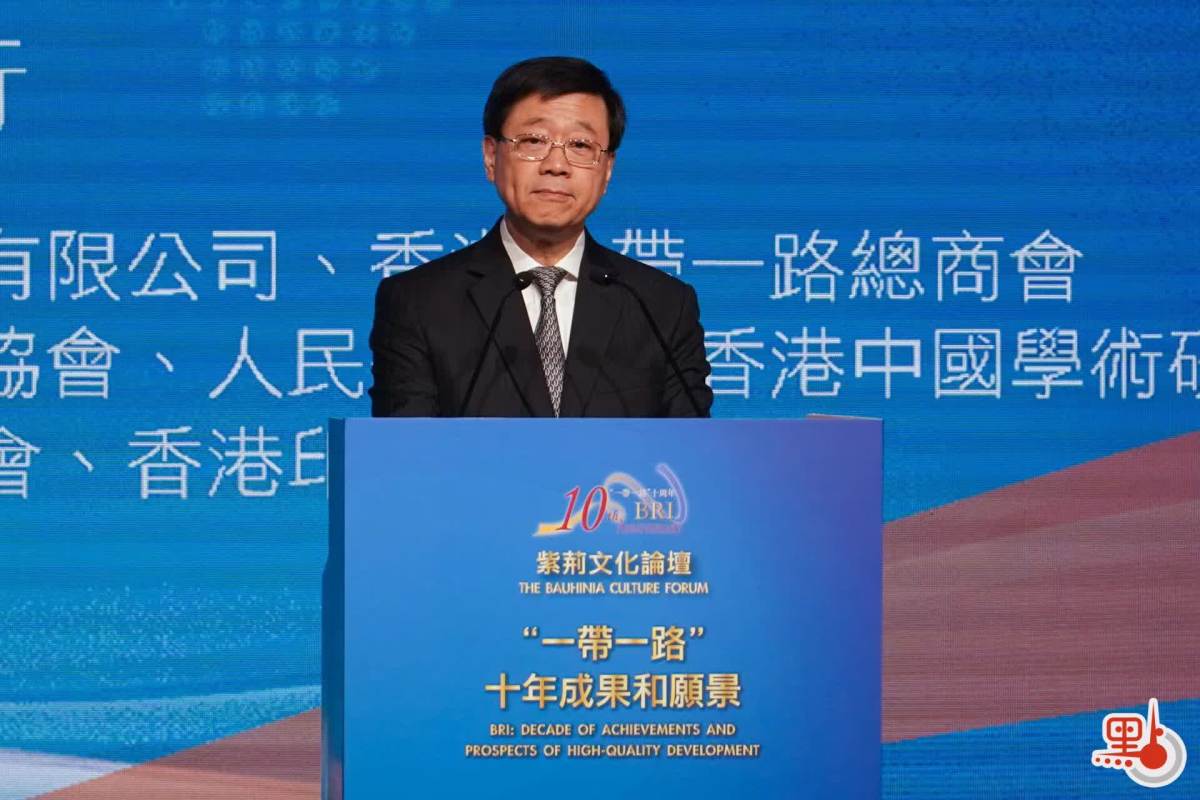 【點新聞報道】由紫荊文化集團主辦的「『一帶一路』十年成果和願景──紫荊文化論壇」今日(7日)在香港君悅酒店舉辦。行政長官李家超在致辭時表示,自國家主席習近平在2013年宣布「一帶一路」願景以來,「一帶一路」倡議推動國際在建設、貿易及金融等方面進行合作,至今有超過150個國家及30多個國際機構簽署了協議,佔全球40%的GDP及世界商品貿易的45%。