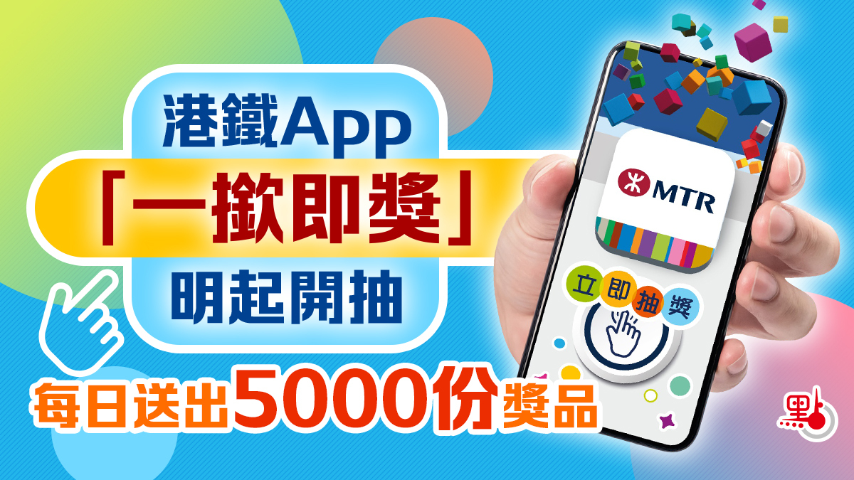 明日起至7月12日,MTR Mobile的登記用戶只需於早上9時至傍晚6點登入程式,再按「立即抽獎」的按鈕,免費參加抽獎。每名用戶每日可以抽獎一次,整個抽獎期內,最多可獲一次獎賞;若中獎,抽獎頁面會即時公布得獎結果,記得到時參加喇!