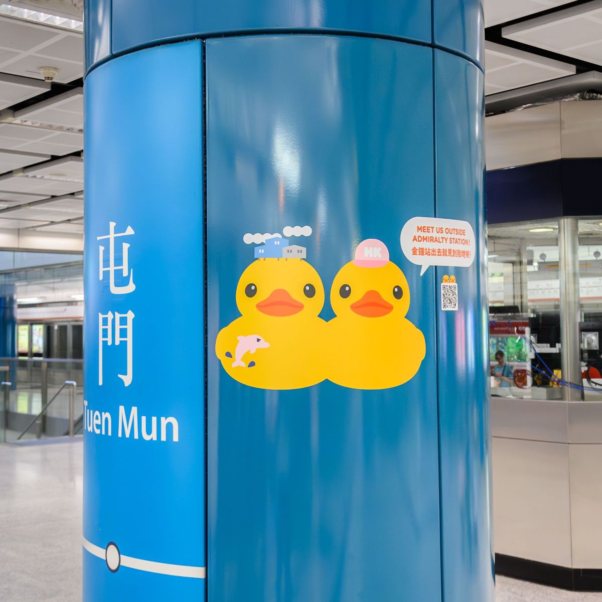 特別版設計繼續以香港本土文化為靈感,結合橡皮鴨的可愛形象,展現香港多姿多彩的文化色彩和活力。機場站的橡皮鴨設計以大嶼山獨有的「藍的」為主題,讓來自世界各地的旅客到埗及登上機場快綫出發往市區時,瞬間感受到一對歡樂橡皮鴨的熱烈迎接;沙田站的橡皮鴨更換上龍舟隊伍造型,讓乘客體驗本地傳統及地道的龍舟文化風情,一同迎接下周的端午節。